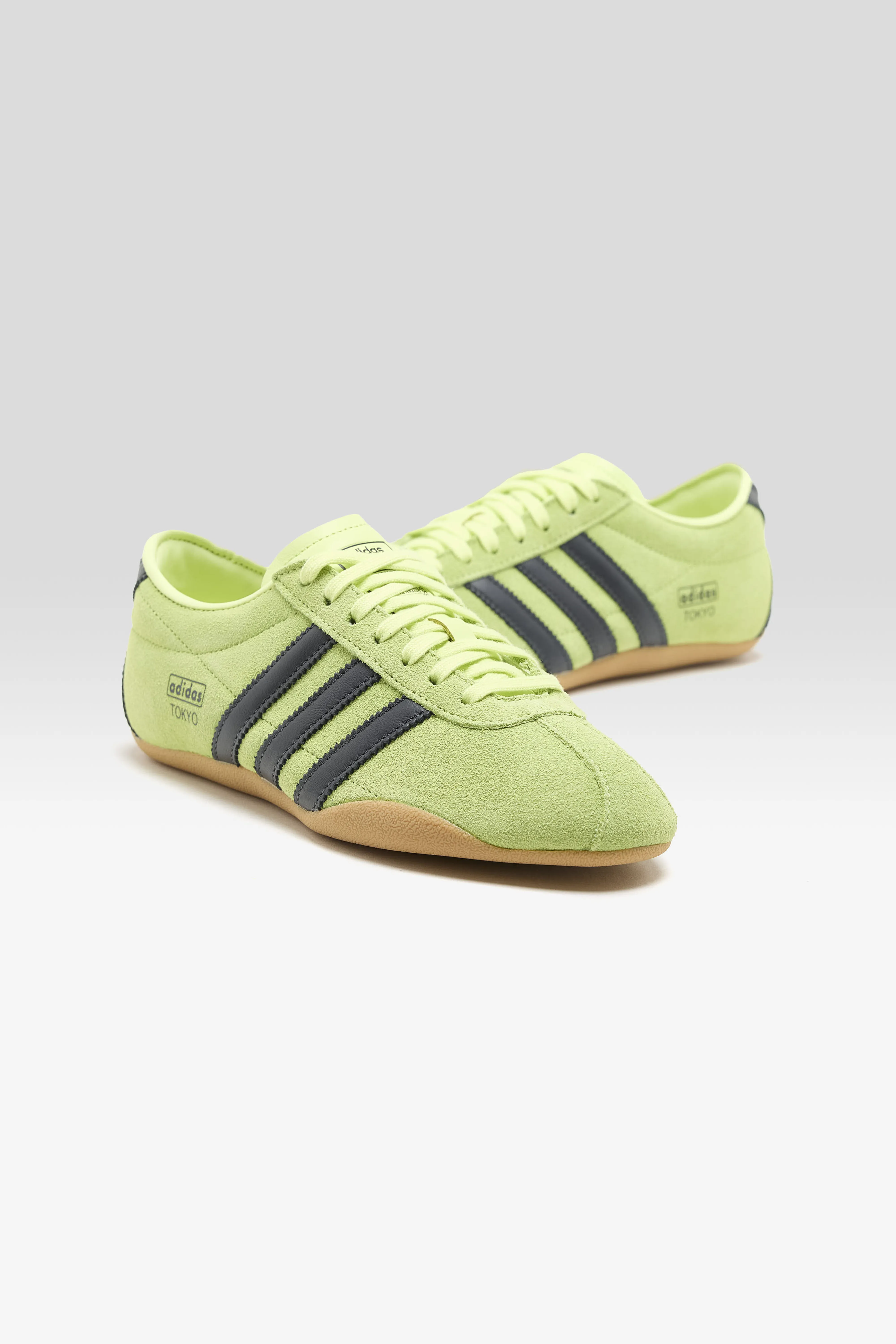 The Adidas Tokyo low-profile sneaker features a slim silhouette in leather with a rubber outsole.