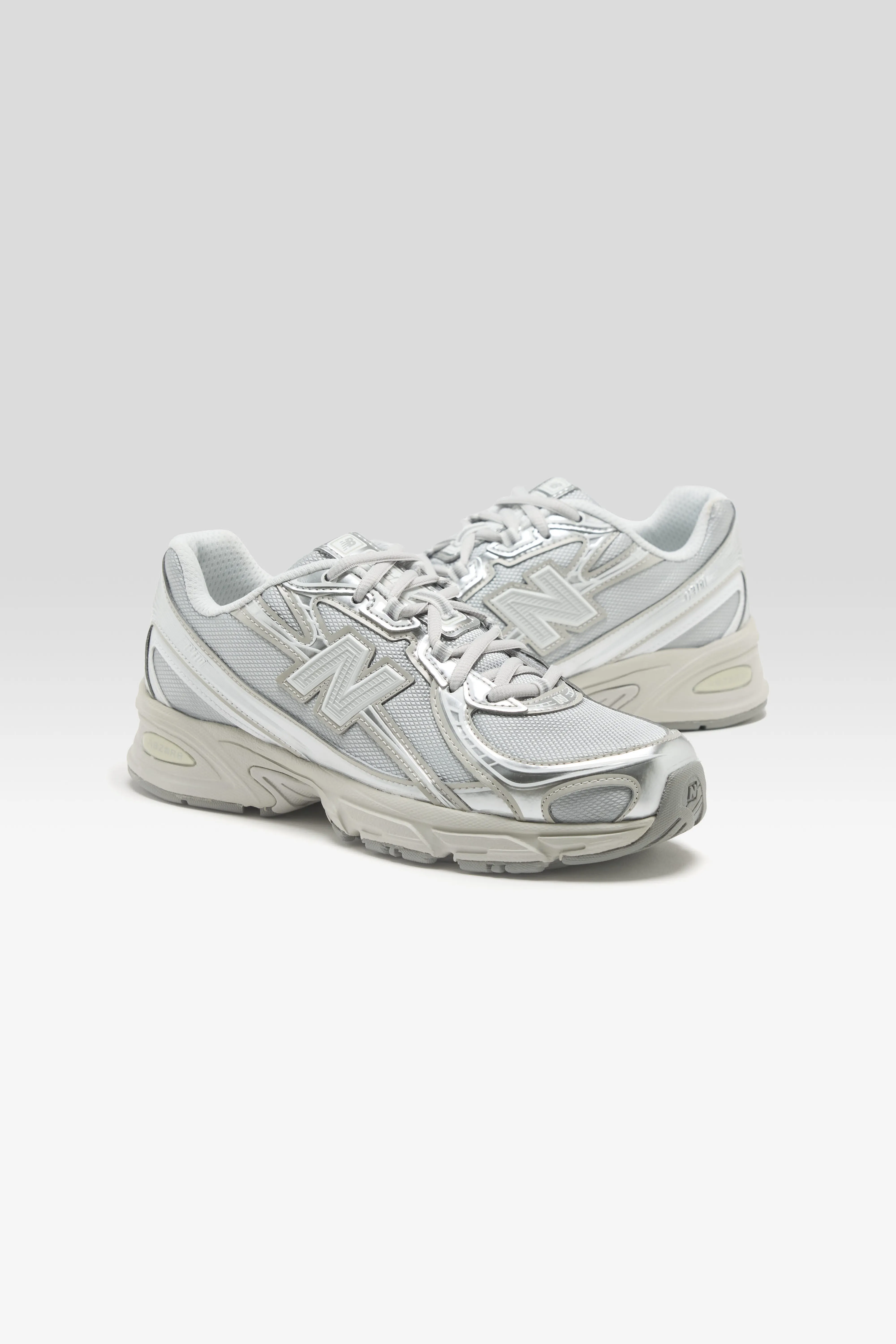 The New Balance 740 lifestyle sneaker features a two-tone open-knit mesh upper with angular synthetic suede overlays in a streamlined silhouette.